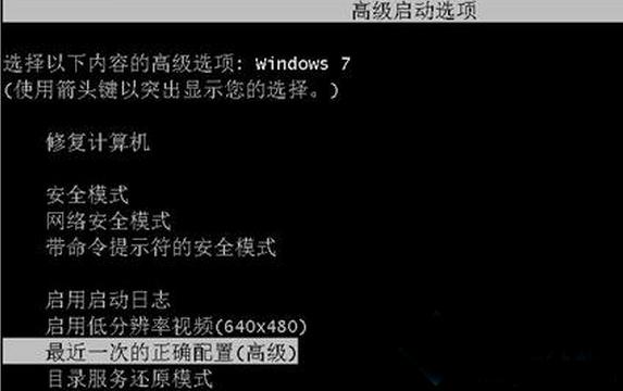 2、選擇“最近一次的正確配置(高級)”選項,對系統(tǒng)還原至最近一次關(guān)機前的配置;