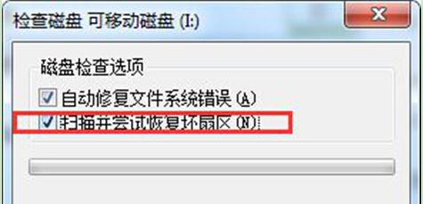 3、彈出檢查修復窗口,勾選“掃描并嘗試修復壞扇區(qū)”的選項,然后點擊開始;