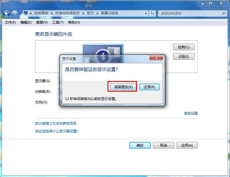 3、調(diào)整以后點(diǎn)應(yīng)用,應(yīng)用以后可以選擇保留更改或還原。