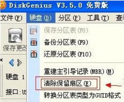 第三步、選擇其中的‘清除保留扇區(qū)’。