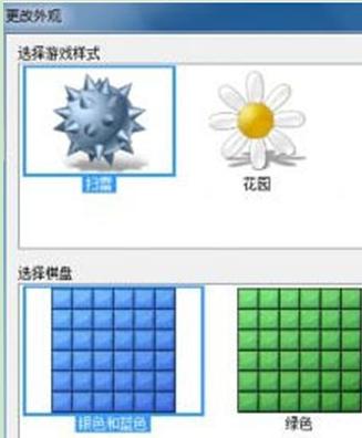 三、在其面板上便可看到掃雷程序提供兩種外觀樣式,包括雷的樣式和棋盤樣式也可以進(jìn)行指定,用戶還可對(duì)每局游戲進(jìn)行隨機(jī)樣式選擇。