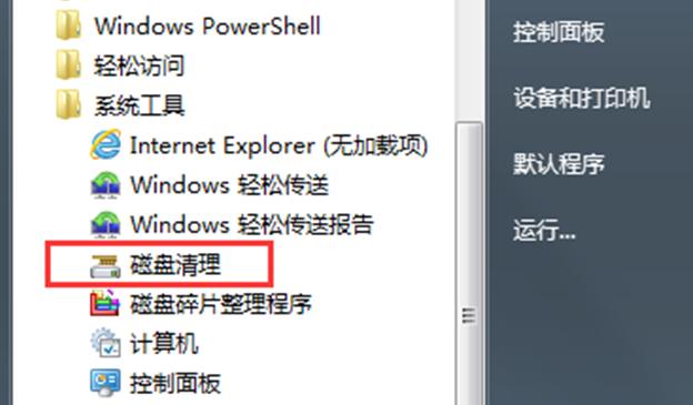 1、點擊“開始——所有程序——附件——系統(tǒng)工具——磁盤清理”。