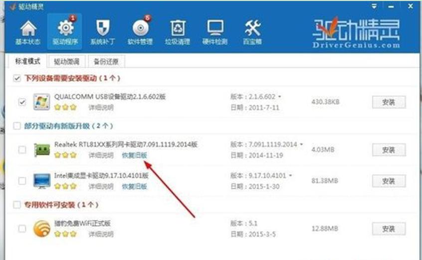 驅(qū)動精靈是用戶管理驅(qū)動的萬能助手,用戶可通過驅(qū)動精靈輕松地恢復舊版驅(qū)動,還可對驅(qū)動進行備份和更新等。
