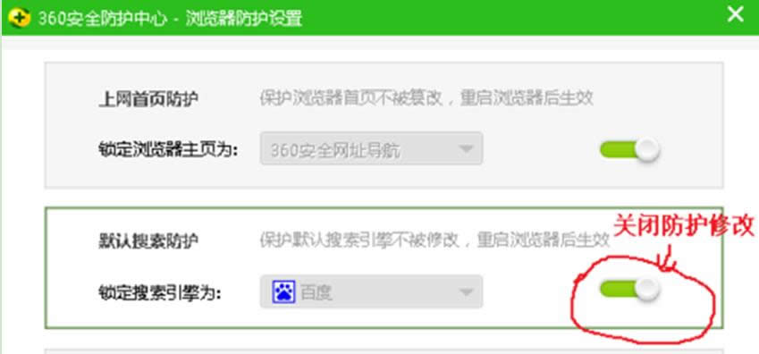 3、在默認搜索防護中關閉保護修改為自己需要的搜索就行了。