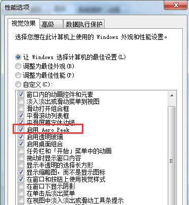 | Windows 7,中文名稱視窗7,是由微軟公司(Microsoft)開發(fā)的操作系統(tǒng),內(nèi)核版本號(hào)為Windows NT 6.1。Windows 7可供家庭及商業(yè)工作環(huán)境:筆記本電腦 、平板電腦 、多媒體中心等使用。Windows 7可供選擇的版本有:入門版(Starter)、家庭普通版(Home Basic)、家庭高級(jí)版(Home Premium)、專業(yè)版(Professional)、企業(yè)版(Enterprise)(非零售)、旗艦版(Ultimate)。 Win7筆記本系統(tǒng)使用過(guò)程中,用戶可通過(guò)任務(wù)欄和開始菜單屬性中的“使用Aero Peek預(yù)覽桌面”選項(xiàng)來(lái)關(guān)閉和開啟桌面預(yù)覽功能,而有部份用戶發(fā)現(xiàn),這一選項(xiàng)選框變成了灰色的問(wèn)題,Win7筆記本“使用Aero Peek預(yù)覽桌面”選項(xiàng)呈灰色咋回事?其實(shí)由于用戶關(guān)閉了 aero peek功能的原因,解決方法如下: