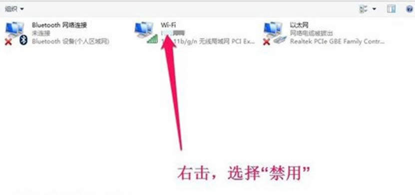 3、右擊的WiFi圖標(biāo),選擇“禁用”