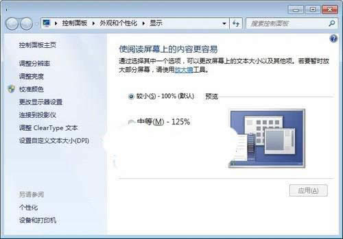 5、還可點擊“更改文本和圖標(biāo)的大小”,使屏幕上的內(nèi)容變易于閱讀。設(shè)置時,用戶可根據(jù)自己的需要選用較小或中等選項。