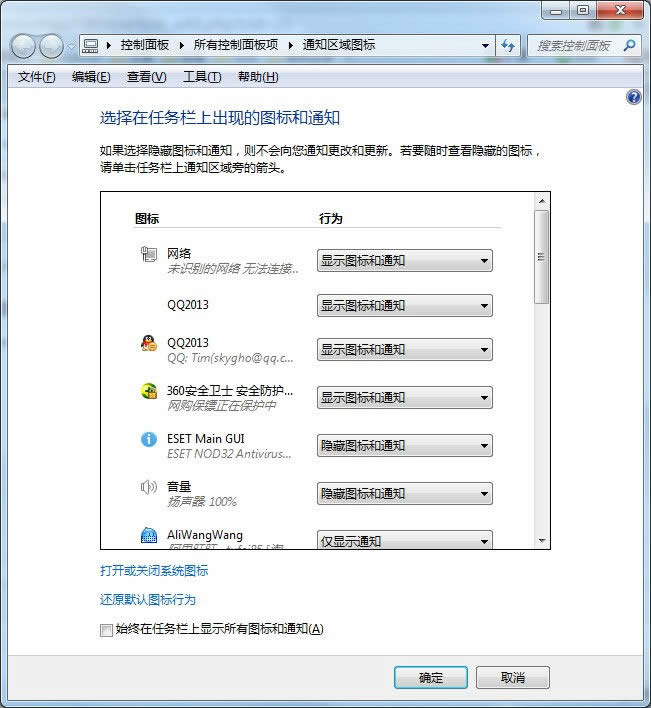 第三,取消“打開(kāi)或關(guān)閉消息”中所有的選項(xiàng)框,點(diǎn)擊“確定”按鈕后就可以全部關(guān)閉所有的“操作中心”的提示了。