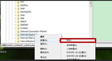 第三步、右鍵點(diǎn)擊“Internet Explorer”,選擇新建“項(xiàng)”。