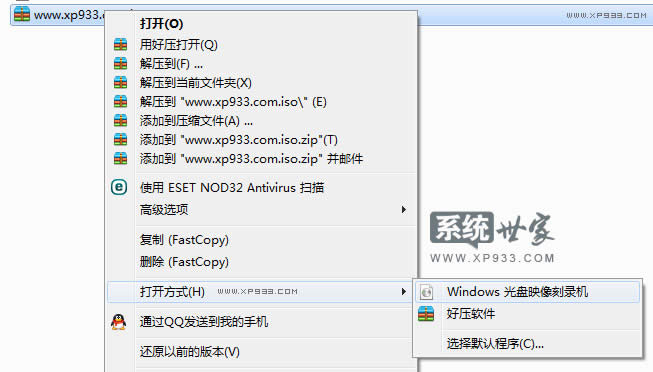 首先你得要一個(gè)ISO鏡像文件,然后鼠標(biāo)右鍵 -> 打開方式 -> windows 光盤映像刻錄機(jī)。