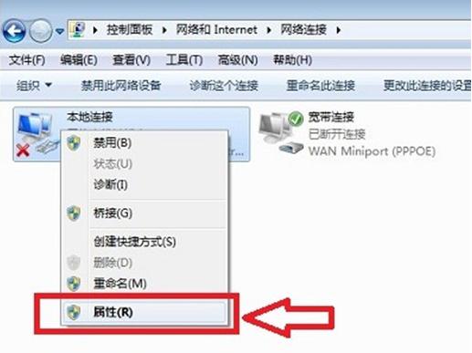 3、此時便可看到電腦的本地連接設(shè)置窗口了,右擊“本地連接”選擇屬性。