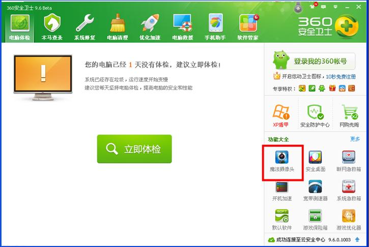 1、打開360安全衛(wèi)士,在功能大全處可以看到有攝像頭的圖標,雙擊下就可以自動安裝了。