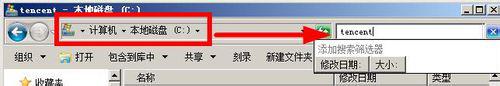 10、接著來(lái)到計(jì)算機(jī)的C盤,對(duì)沒有用的tencent文件夾進(jìn)一步清掃,在搜索框輸入tencent,按下回車鍵