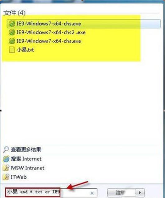 3、勾選“使用自然語(yǔ)言搜索”后,在開(kāi)始搜索框或是資源管理器右上角的搜索框中就可輸入多個(gè)查詢關(guān)鍵字了。使用自然語(yǔ)言搜索,連接符“或”用自然語(yǔ)言“or”表示。類似地,連接符“和”用自然語(yǔ)言 “and” 表示。如圖示