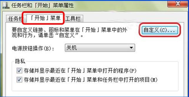 1、右擊Win 7桌面空白處,選擇“屬性”選項。出現(xiàn)的“任務(wù)欄[開始]菜單屬性”選擇“[開始]菜單”選項,點擊“自定義(C)”按鈕。