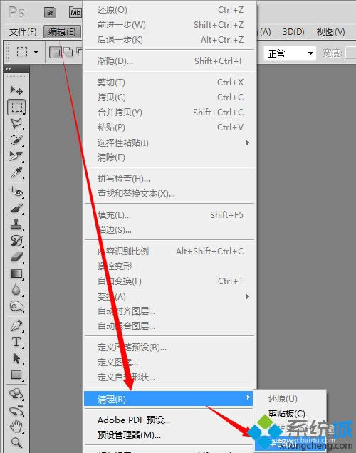 5、如果前面進(jìn)行的步驟操作較多,可以執(zhí)行“編輯——清理——全部“的命令釋放內(nèi)存。將前面記錄,掛起等的內(nèi)存釋放。注意:前面如果有需要保存的步驟,請(qǐng)先保存,謹(jǐn)慎使用該功能;