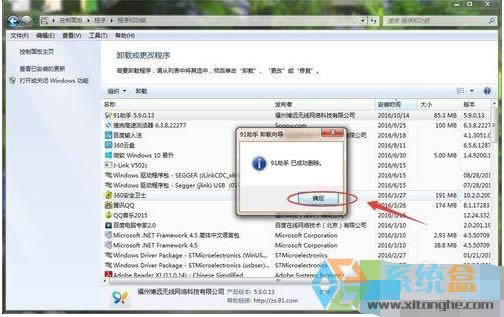 4、現(xiàn)在跳轉(zhuǎn)到程序?qū)υ捒颍谶@里面找到自己要卸載的百度手機助手軟件,然后雙擊,百度手機助手即可。
