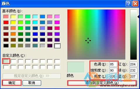 4、點擊其他顏色,設置保護色:建議將色調設定為:85。飽和度:90。亮度:205。(飽和度可在90-123范圍之間,建議90為最佳。)